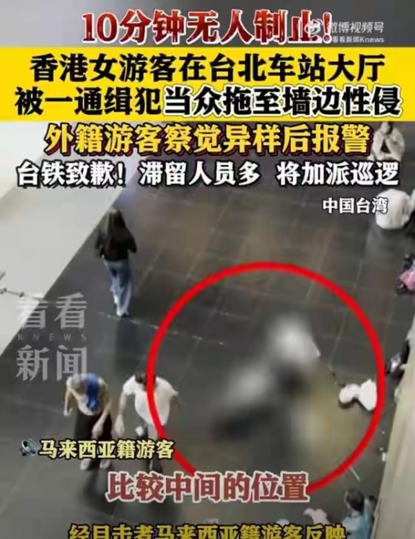 四点多的台北车站大厅,人潮涌动。推着婴儿车的家庭、拖着行李箱的上班族、低头刷手机的学生,每个人都在匆忙赶路。然则,就在这片热闹中,一名男子突然冲向瘫倒的香港女游客,将她拖至墙边实施侵害。十分钟里,监控记录下无数路人经过,却无人制止,甚至有人瞥了一眼便匆匆离开。这种集体沉默,是恐惧的蔓延,还是麻木的常态?