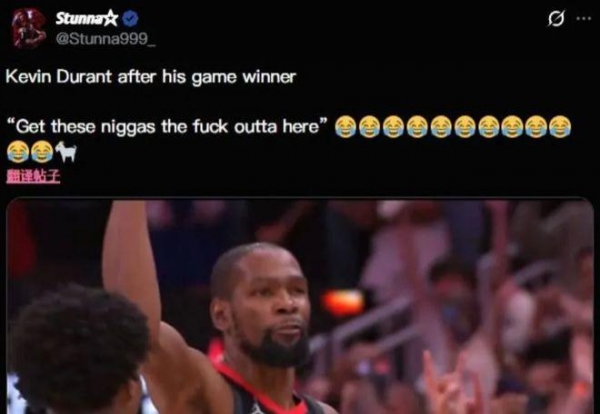 在命中了绝杀之后,杜兰特直接怒吼:" 让这些黑鬼滚出去 "。