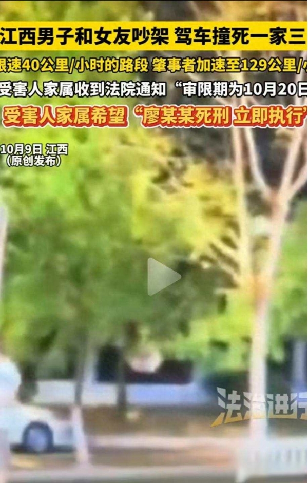 2024年10月2日傍晚,胡先生和妻子孩子正走在家门口的路上,一辆车飞快冲过来,把他们撞飞了,监控里看得清楚,开车的是廖某宇,车速飙到一百二十九公里,他女朋友在车里喊了几次,他都没停,撞上人后,他没下车,没打电话,没喊人,就站在路边点了一支烟,等救护车来了,三个人已经没救了。