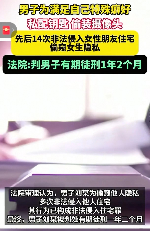最近,一条新闻在网上炸开了锅:一名男子竟然14次非法侵入他人住宅,专门偷窥女生隐私,最终被法院判处有期徒刑一年两个月。这事儿一出,网友们纷纷留言,有人愤怒,有人分析,还有人提出更深层次的法律思考。今天咱们就来聊聊这起让人细思极恐的案件。