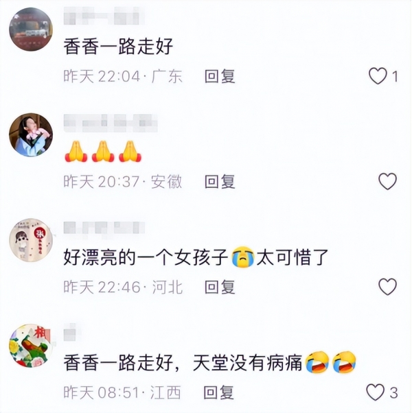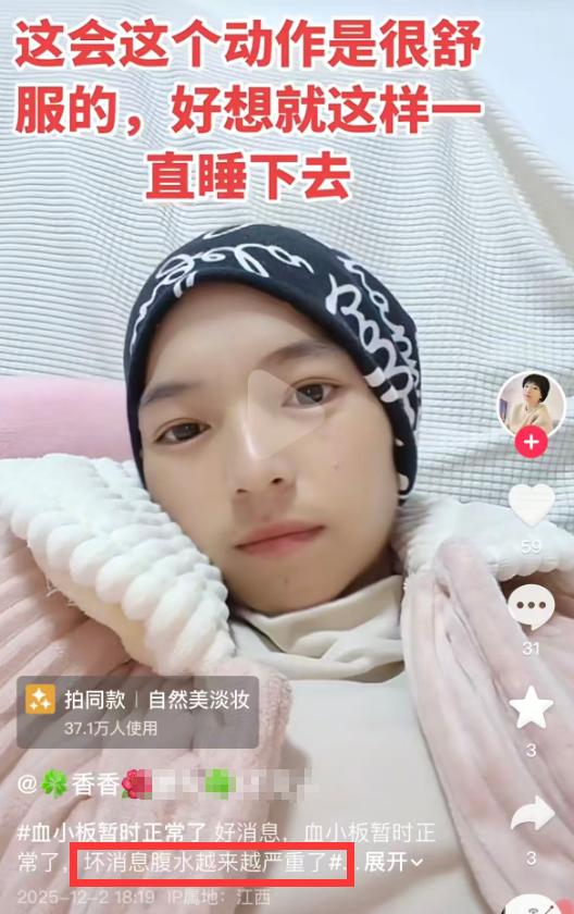 12月2日,香香在更新的动态中透露,虽然血小板正常了,但腹水症状却愈发严重,结果仅仅相隔一个月,香香便永远离开这个世界。