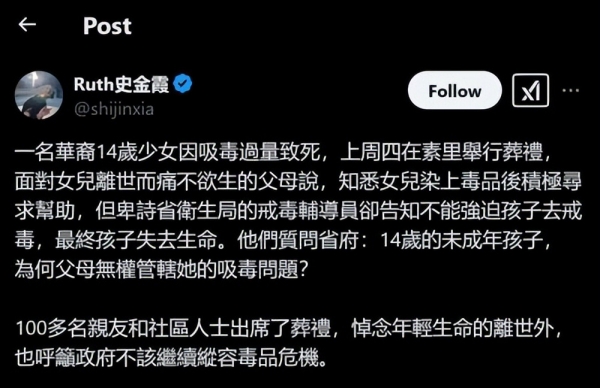 这一悲剧,不只是一个孤立的事件,而是加拿大毒品合法化政策下众多悲惨故事的缩影。它警示着我们,毒品合法化绝不是解决毒品问题的良方,而是打开了潘多拉魔盒,释放出无尽的罪恶与苦难。