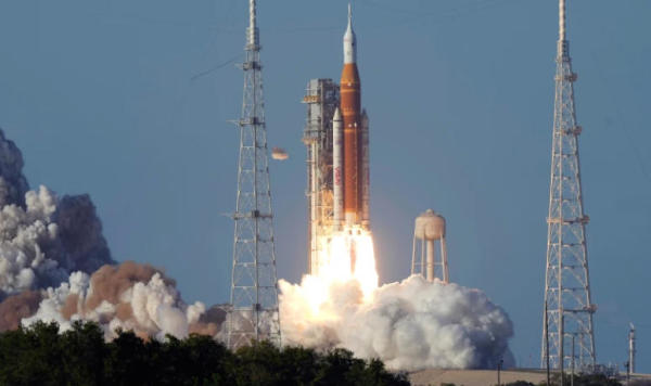 执行"阿尔忒弥斯二号"任务的"太空发射系统"(SLS)重型火箭发射升空