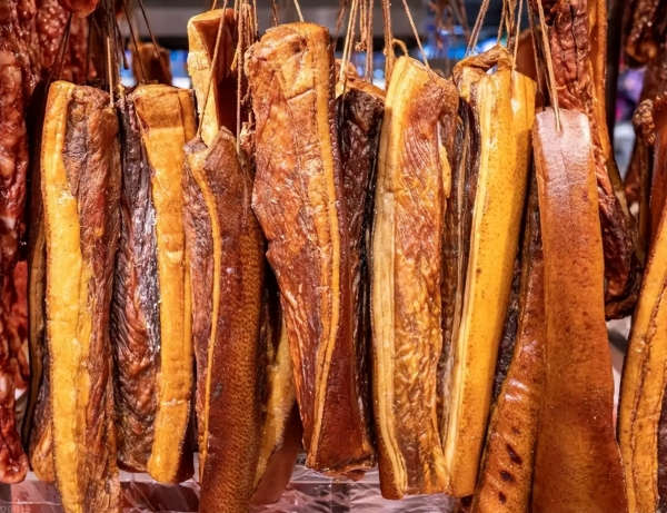 腊肉、咸菜、泡菜、火腿肠、方便面、薯片等加工食品,为了保鲜和提味,都会添加大量的盐。比如 100 克腊肉的含盐量约为 5 克,100 克咸菜的含盐量可达 8 克以上,一包方便面的调料包中,含盐量就接近 5 克,相当于一天的推荐摄入量。很多人喜欢用咸菜配粥、用火腿肠当零食,不知不觉中就吃进了大量的盐。