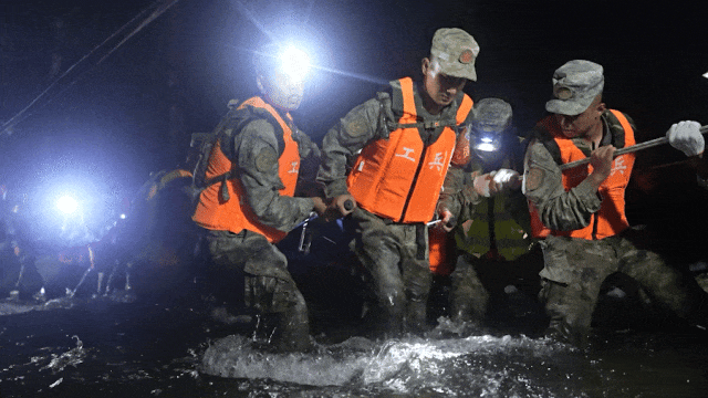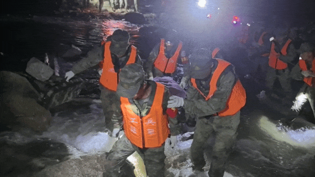 战士胡振华从家长手中接过孩子