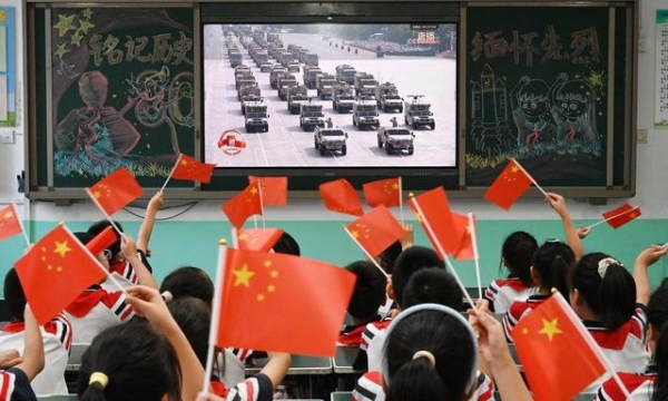 年长者安静落泪,有些年轻人压根没说话,只盯着屏幕。当"杨靖宇连"旗出现时,朋友圈上一水的感慨刷屏,都用各自方式表达一种情绪。过去飞机不够,只能多飞几遍,今天歼20S直接飞过。
