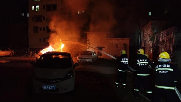 8月23日凌晨2时57分,云浮市云城区云城街道城西宝华宾馆附近发生一起惊险的燃油车自燃事件。一辆燃油小汽车突然起火,火势迅猛,情况危急。接到119指挥中心的紧急报警后,云城区乐谊路消防救援站迅速响应,立即出动两辆消防车、12名消防救援队员,火速奔赴现场展开救援行动。