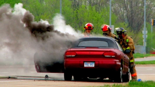 由于火势猛烈且天气炎热,车辆燃烧产生的温度极高,现场浓烟密布,给救援工作带来了极大的挑战。但消防指战员们凭借着专业的技能和顽强的意志,紧密协作,经过十几分钟的艰苦奋战,终于将大火彻底扑灭。为防止火势复燃,消防指战员们还进一步撬开车头盖,对小车引擎部位进行深度冷却处理,并仔细检查车身各部位,确保安全无虞。