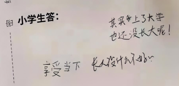 有大学生纠结于"怎么能慢点长大",一位小学生却给出了"享受当下"的简洁而深刻的答案。