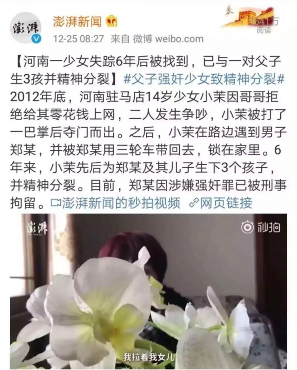 最为人面兽心的是,郑家人将仅仅14岁的女孩当做发泄性欲和传宗接代的工具。