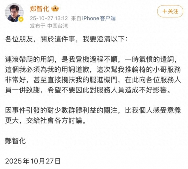 说实话,郑智化能主动出来致歉,态度还挺让人佩服。一句"比我个人感受更重要的是对少数群体利益的关注",这话说得敞亮。但这事也提醒大家,网络放大情绪容易,但别忘了每一句话背后,都是一个个真实的人。机场服务也好,残障出行也罢,都需要社会共同进步。