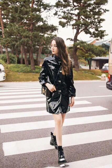 迪丽热巴私下的穿搭比较保守,这次选择的液体裙非常亮眼,虽然是皮衣的感觉,但是漆皮得面料,看上去像是有液体在流动一样,走在街头,也是帅气又有型,还配了一双马丁靴,让人看起来非常有气势,裙子长度比较短,更好的拉伸了腿的视觉长度,提高了腰线,营造了一双大长腿,这件液体裙更是照的腿非常白皙,真是令人羡慕。