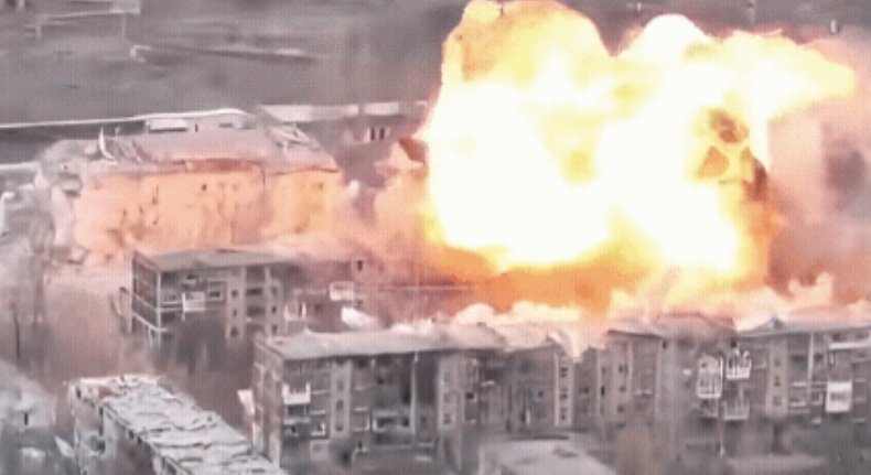 俄军这枚三吨重的"铁疙瘩"精度率非常高,直接炸中了乌军所在的楼房,瞬间产生巨大爆炸!爆炸威力清晰可见,腾起一朵巨型蘑菇云!里面的乌军生死难料。