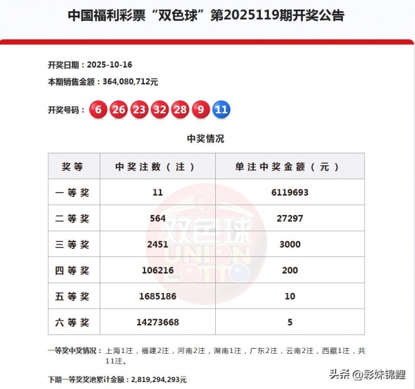 今天10月16日,星期四,晚上双色球25119期开奖出炉了。