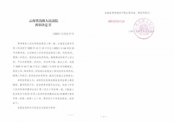 2025年10月28日,云南高院做了一件很少见的事,上午刚维持了对田永明的死缓判决,下午就自己推翻这个决定,说要再审,这种情况放在谁身上都会觉得意外,同一个案子在同一天里发出两份方向完全不同的文书,法院的做法前后不一致,确实不多见。