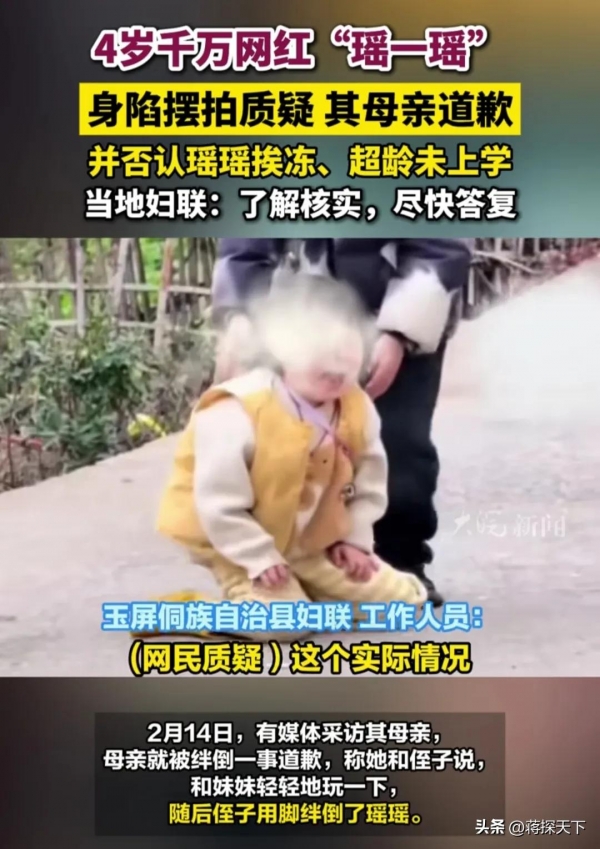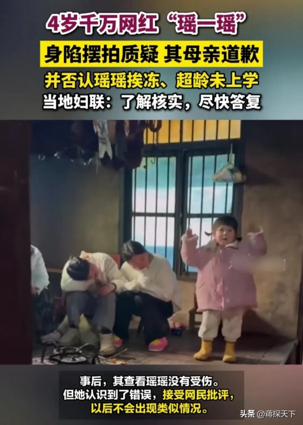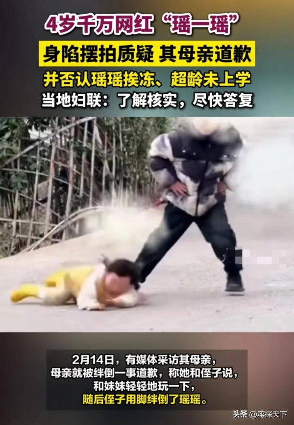 瑶一瑶的母亲在评论区做出回应:"上次这样做没拍到,这次让轻轻弄,可孩子不会演。"她甚至还称"孩子摔摔打打才能皮实",这番言论彻底点燃了舆论的怒火。