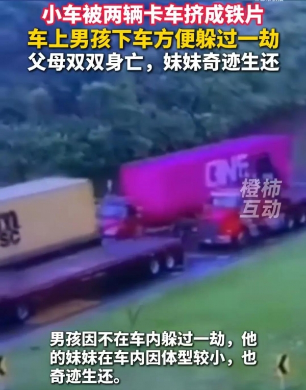 就在男孩离开车辆不久,一辆半挂卡车从后方猛烈撞上了他们停在路边的汽车,造成严重撞击。事故导致车内的两名成年人当场死亡。奇迹的是,当时同在车内、因体型较小而处于相对安全位置的妹妹得以幸存。而刚刚下车的胡里奥,则因这短暂的"离席",戏剧性地逃过了这场灭顶之灾。