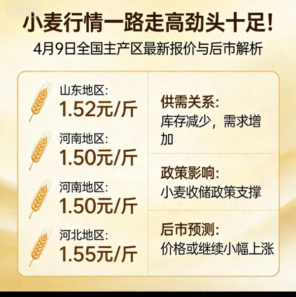 4月9日主产区小麦报价:全线飘红,涨势明确