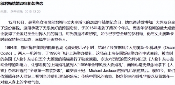 2016年是邬君梅与奥斯卡结婚20周年,在社交媒体平台上,她分享了自己和丈夫的日常生活。
