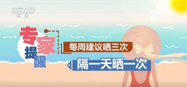 专家提醒,每周建议晒三次,隔一天晒一次。千万不要贪图功效,把皮肤晒伤、晒痛,更不可长时间暴晒,以免中暑;要及时补充水分或淡盐水防止脱水。