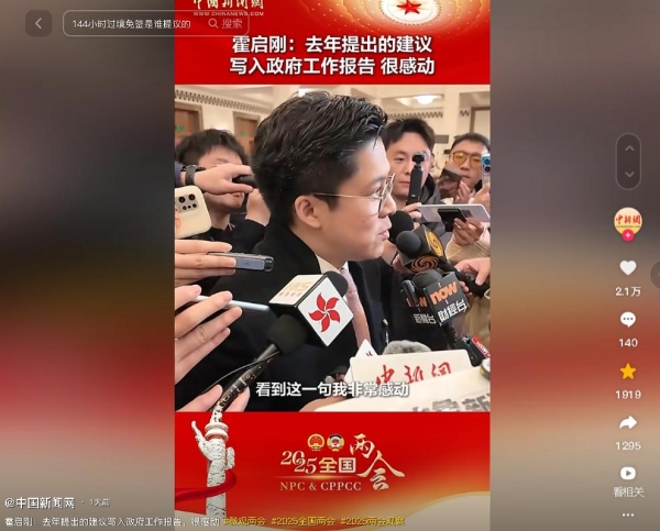 面对国家对自己的提议做出了积极的回应,在两会结束后,霍启刚在镜头面前,也发言表示自己很感动。
