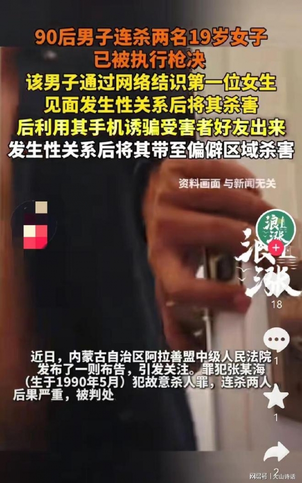 "太恶劣了!"内蒙古,男子将19岁女子约至住处发生关系,事后阻止其离开。发现女子向外求救时,男子将其杀害。之后,男子又约女子19岁的好友发生关系,后又将女子的好友杀害。近日,男子已经被执行枪决。
