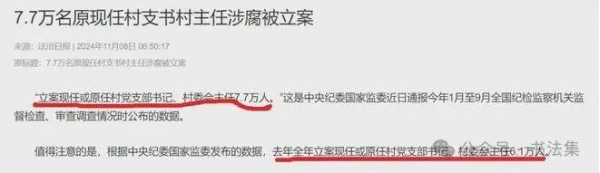 前段时间,一个让大家很震惊数据公布,7.7万名原现任村支书村主任涉腐被立案!这是中央纪委国家监委近日通报的,今年1月至9月全国纪检监察机关监督检查、审查调查情况时公布的数据!