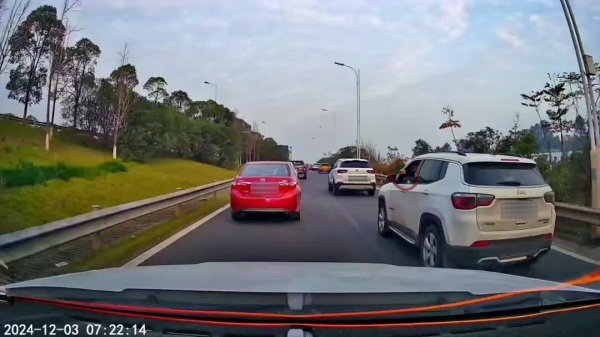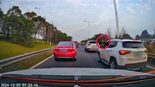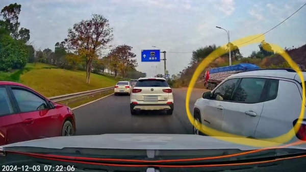 有车辆在道路上加塞、