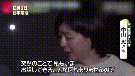 中山忍在6日晚上赶到姐姐家中,含泪表示对突如其来的事,不知如何交代,多次鞠躬后上车离开,坦言会在适当的时候向大家交代情况。