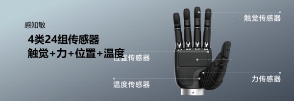 在灵巧手感知技术方面,RH56F1系列灵巧手搭载了因时机器人多项自研传感器技术,集成触觉、力、位置和温度四大类共24组高性能传感器: