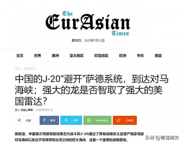 在美西方保持沉默的时候,印度站出来说了一句大实话。印度媒体对这件事情进行了报道,大标题为:中国的J-20"避开"萨德系统,到达对马海峡;强大的龙是否智取了强大的美国雷达?