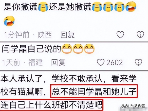 原来,在闫学晶"哭穷"的背后,她的儿子又陷入"学历争议"。