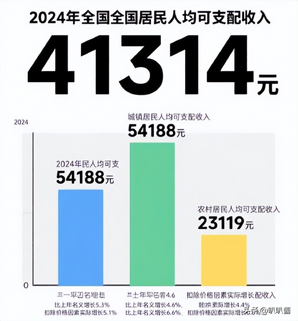 依据国家统计局统计,2024年全国居民人均可支配收入仅为4.13万元。