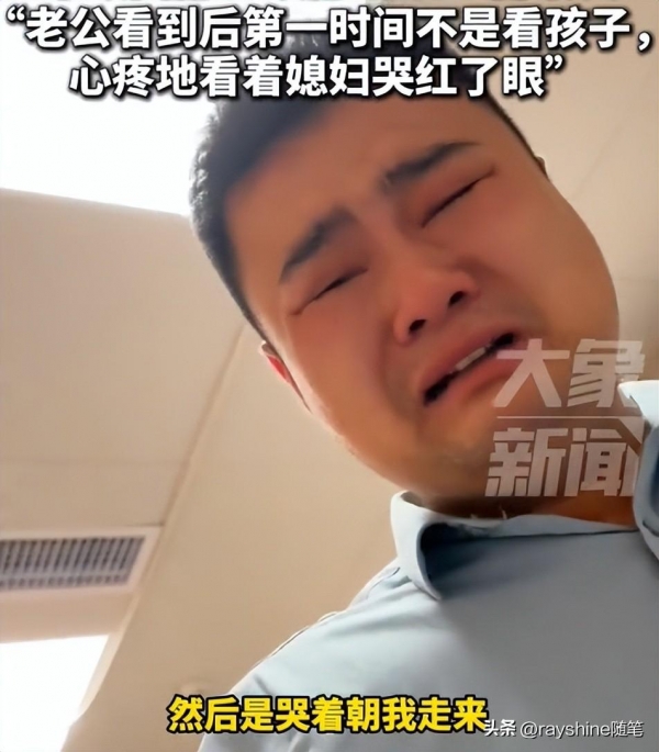 当他的老公推开产房门,并没有第一时间去看刚出生的宝贝 ,而是看着老婆的脸,心疼地不得了,一边哭一边走过来,哽咽地半句话也说不出来。