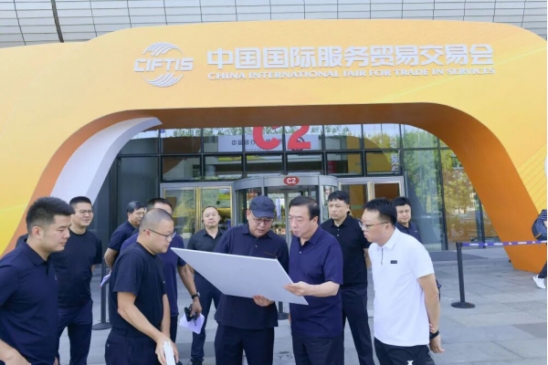 2023年8月28日,董亦军同志(前右二)在中国国际服务贸易交易会举办地,对交通服务保障工作进行现场踏勘。新华社发