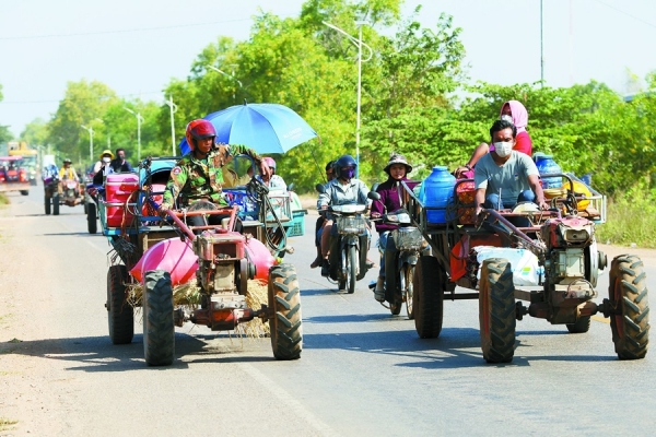柬埔寨暹粒省逃离边境的居民 新华社发