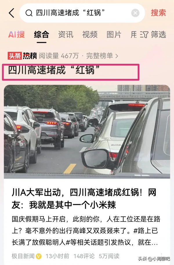 总之就是9月30日开始,全国各地都在堵,四川高速据说已经堵成了"红锅",这阵仗估计全世界也只能在国内看见了。