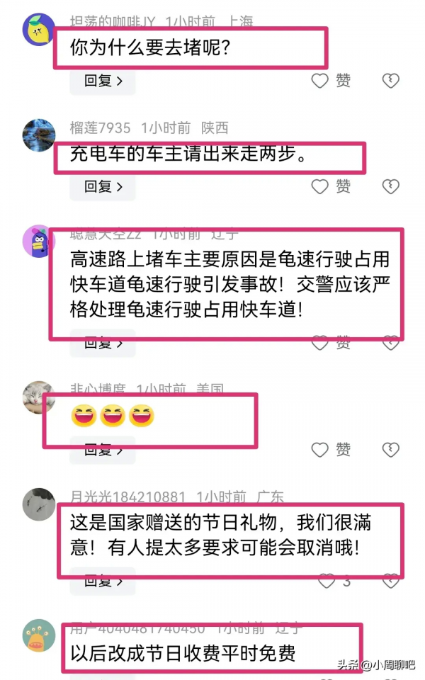 其他网友表示:国家要考虑,取消节假日高速免费,每辆车每年免几千公里通行费,这样把出行都分开了。目前这个样子,是跟容易出交通事故的,影响大家的出行体验。