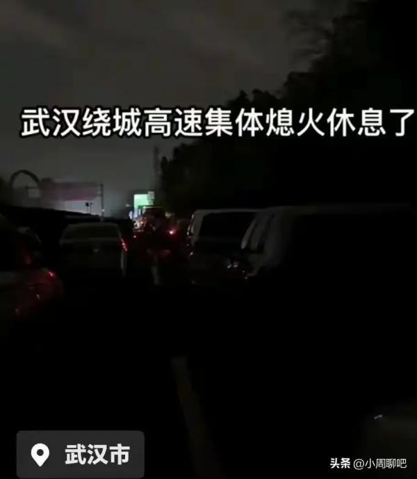 武汉绕城高速的车主们已经全部"熄火睡觉"了,这一眼望不到头的车队,还不知道要堵到什么时候,干脆还是熄火睡觉。