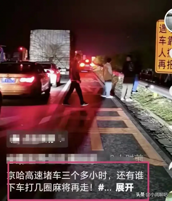 京哈高速也同样如此,据司机表示:京哈高速已经堵车三个多小时了,简直就是"寸步难行",司机大哥也开玩笑道:都可以下车打几圈麻将再走。