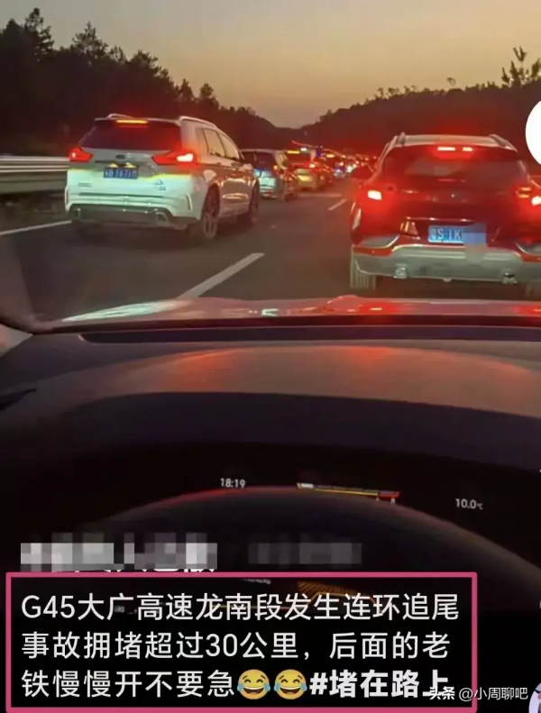 每年其实会堵车,全都是因为"交通事故",而且在高速上都是"连环相撞"。