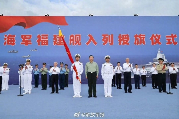 ▲海军福建舰入列仪式,图片来源于解放军报