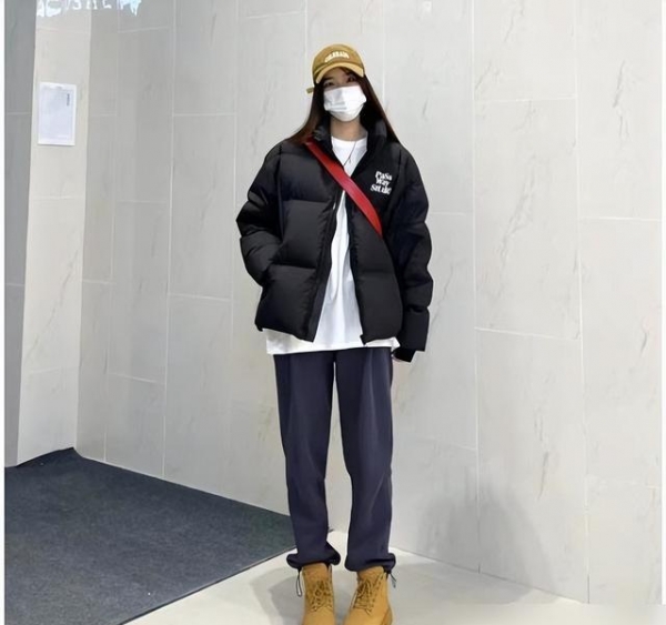 - 复古休闲:黑短羽绒+条纹或灯芯绒阔腿+灰色打底+马丁靴,一条黑白围巾就有氛围。