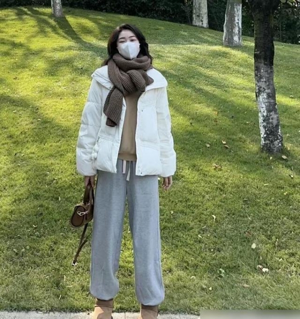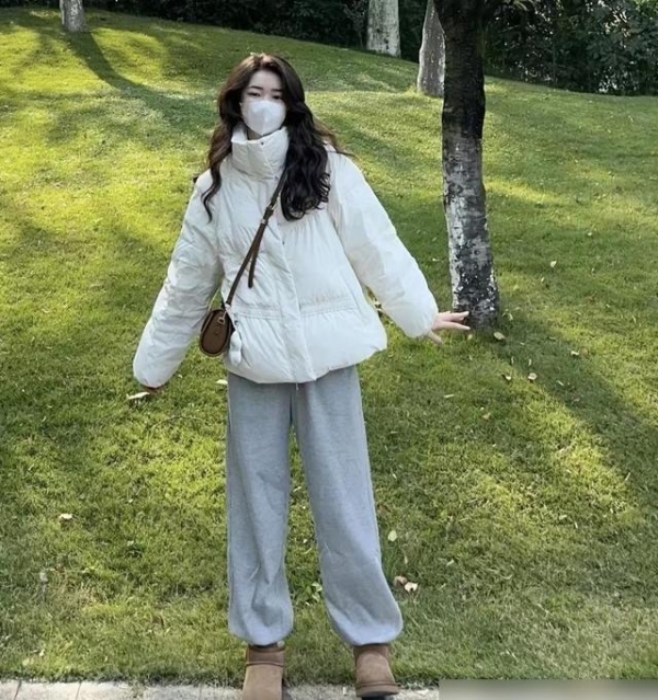 - 青春减龄:灰短羽绒+束脚运动阔腿+AJ或雪地靴,背个帆布包直接回到校园。