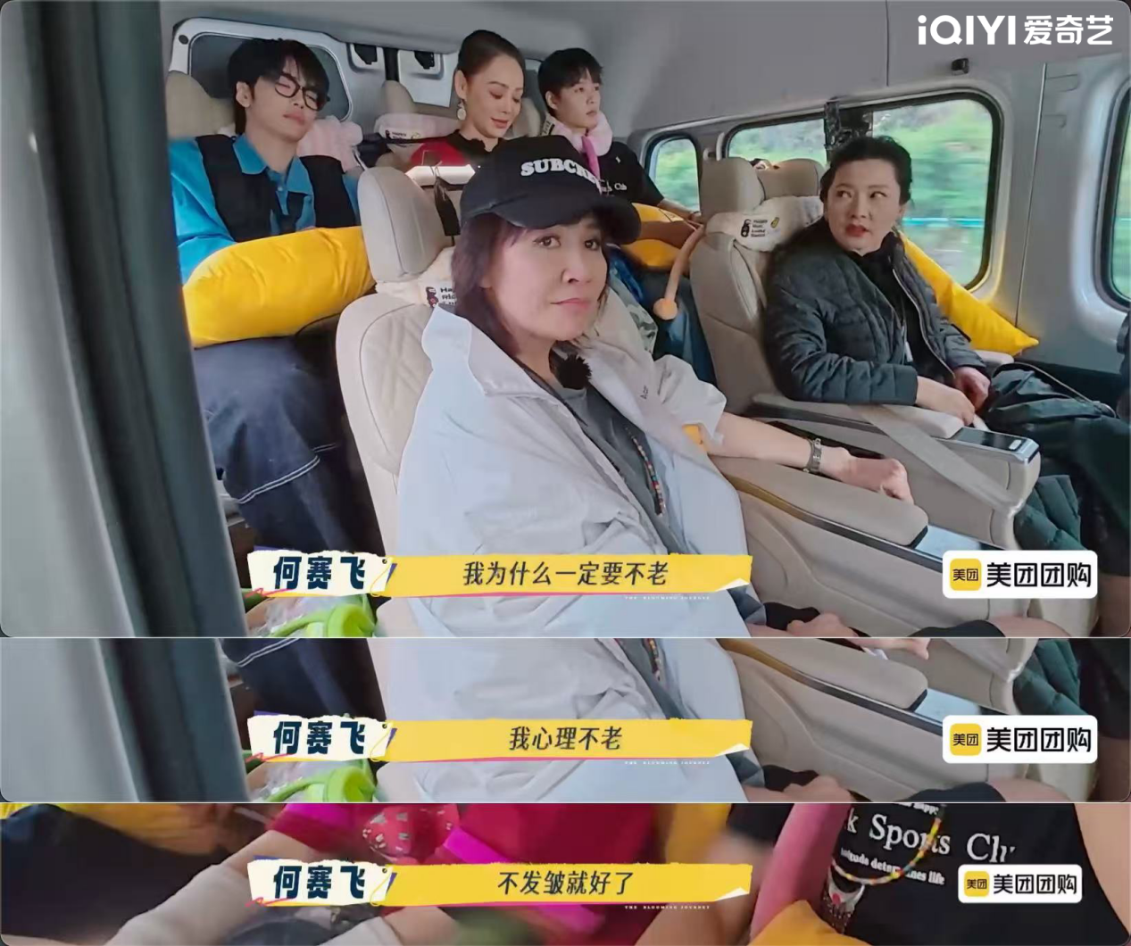 在行车途中,姐弟们依旧保持"繁花"态度大胆开麦。面对"中老年演员无戏可拍"的行业现实,何赛飞直言不讳指出,当下影视作品过度追求年轻化叙事,导致中老年角色空间被严重压缩。一句"我为什么要一直不老?我心理不老、不发皱就够了"道出无数从业者的心声。当谈及演艺圈盛行的医美风潮,何赛飞从戏剧表演的专业角度指出,过度依赖医美容易导致演员面容趋同,削弱角色辨识度;而宁静则直接反驳"人是自己的,他有权利做任何事情",认为选择医美与否是个人自由。两人针锋相对的观点碰撞,使"审美自由""职业要求"等多维讨论得以全面展开。这场不遮掩、不迎合的对话,不仅呈现了中年女演员在年龄、职业与自我价值之间的真实拉扯,也让观众有机会窥见演艺行业背后的结构性焦虑。
