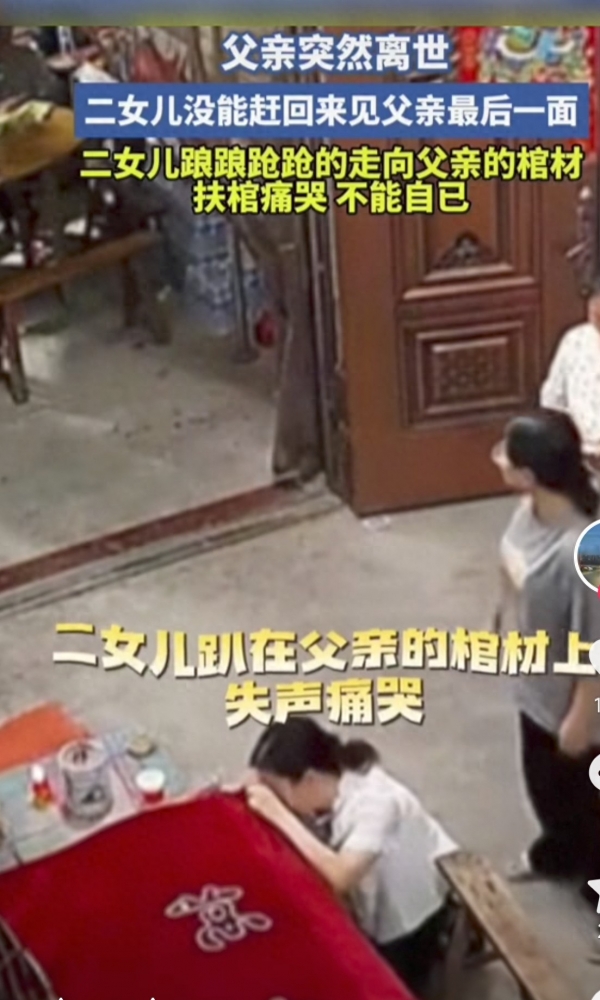 没见到父亲最后一面,女儿跪在老家门口哭得撕心裂肺。一段普普通通的监控录像,最近把全网看哭了。在外打工的女孩接到家里电话,急急忙忙往回赶。推开家门,迎接她的只有门口办丧事的白布和冰冷的灵堂。说好的见最后一面,变成了永远的缺席。家里人怎么拉都拉不住,她趴在地上,眼泪和着泥土,把那种痛彻心扉展现得淋漓尽致。