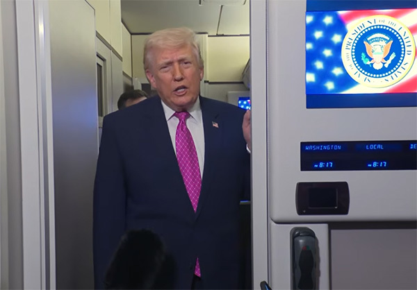 特朗普在"空军一号"上接受媒体采访 视频截图