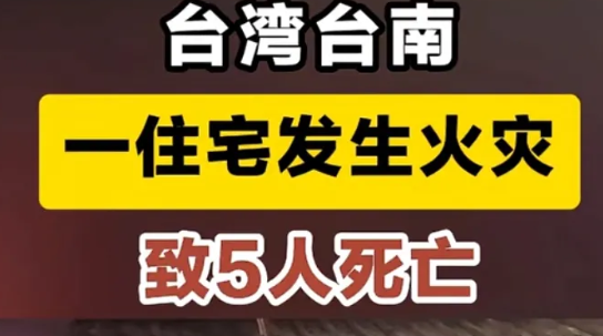 据央视新闻客户端的消息,2024 年 8 月 13 日凌晨时分,台湾台南的一栋住宅突发火灾,致使 5 人丧生。