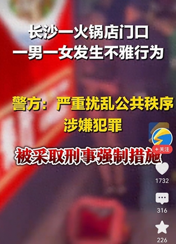 大庭广众之下,一对男女竟不顾众人的目光,在长沙火锅店门口做出不雅行为,三观尽碎。