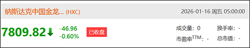 纳斯达克中国金龙指数下跌0.6%东方财富网